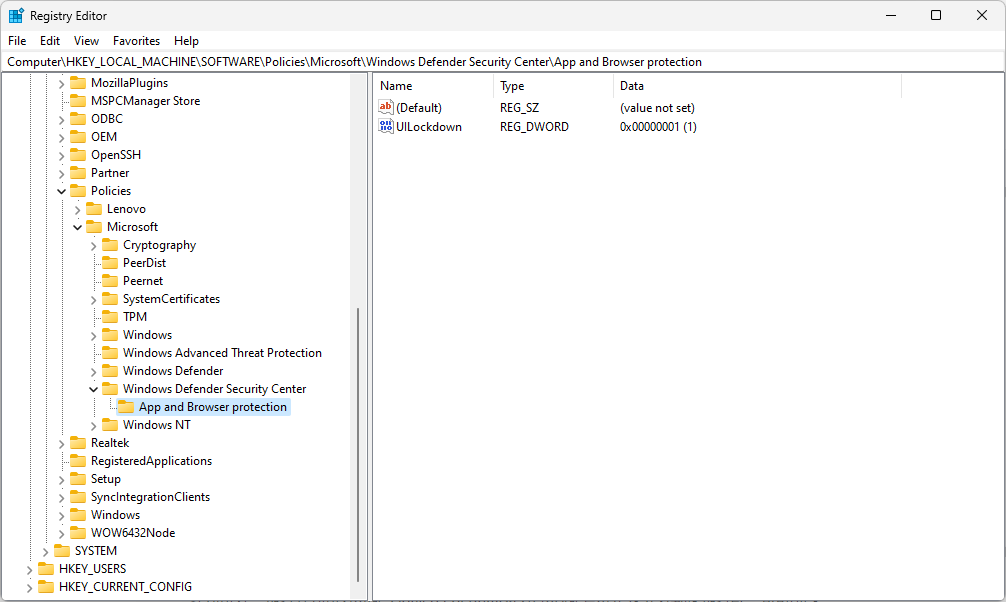 위와 같은 경로로 이동해서 UILockdown 키 값을 0에서 1로 변경하고 재부팅하면 정말 안 보인다. 그래서 작업 표시줄에도 노란색이 사라지고 녹색으로 변경된다.