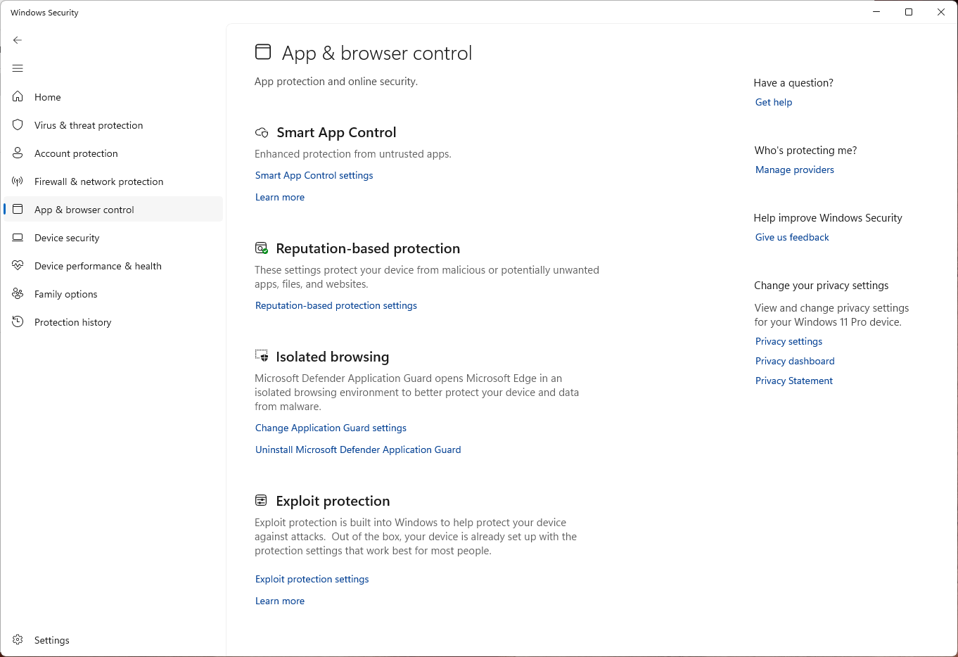 다시 말하면 좌측 메뉴에 App & Browser control에 해당하는 페이지가 없었는데 생긴다는 것이다.