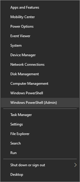 윈도우 시작메뉴 > 마우스 오른쪽 버튼을 클릭하면 위 메뉴에서 Windows PowerShell(Admin)을 클릭해 줍니다. 한글판은 관리자로 파워셀 실행? 정도 되겠네요.
