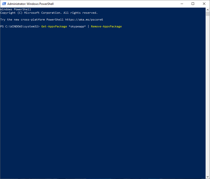 Get-AppxPackage *skypeapp* | Remove-AppxPackage